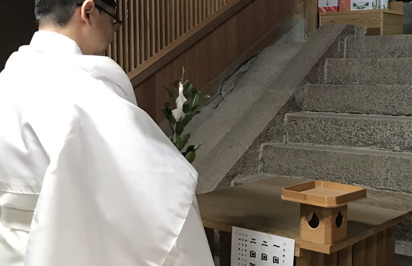まずお祓いを受け、大祓詞を全員で称えます。続いて前月のご加護に感謝し、さらに今月も国家が繁栄し、氏子崇敬者が豊かで安寧な生活ができ、子孫が繁栄するよう大神様に祈念いたします。